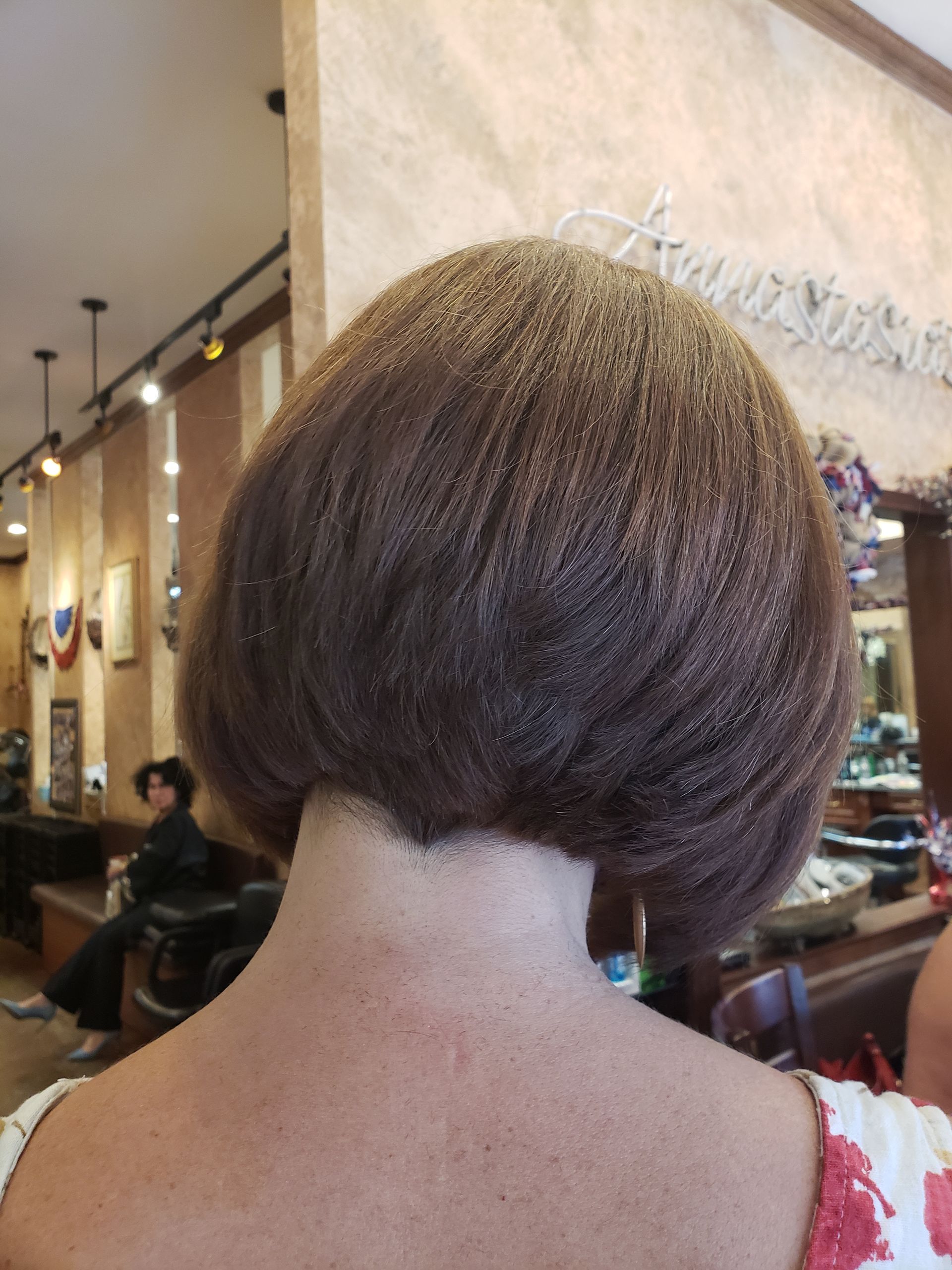 Straight edges and angles with layers for texture and movement. Short to medium-length results.